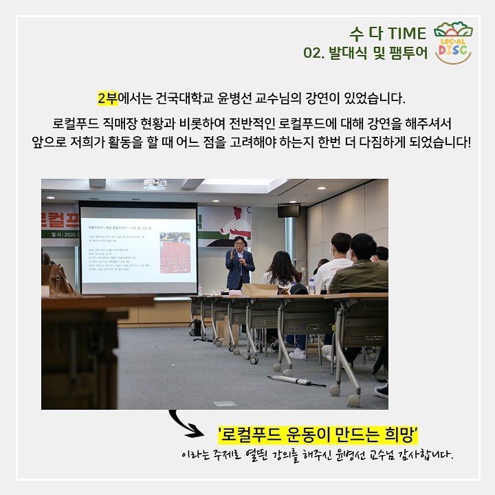 오전엔 위촉장 수여식과 건국대학교 윤병선 교수님의 ‘로컬푸드의 이해’를 주제로 한 특강으로 시작하여