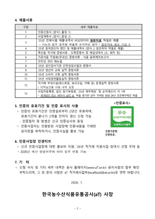 (붙임2)2026년 우수 농산물 직거래사업장 인증제 세부추진계획(안내용).pdf